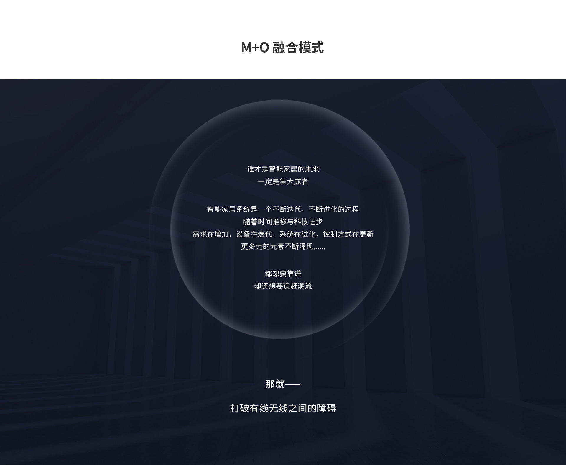 M+O,即Main(基礎(chǔ))與Optional(可拓展)。我們讓老牌可靠的有線技術(shù)(如KNX)鋪設(shè)智能家居骨干網(wǎng),對(duì)家里的燈光、空調(diào)等基礎(chǔ)核心功能進(jìn)行統(tǒng)一控制,讓家居控制的關(guān)鍵功能不容有失。