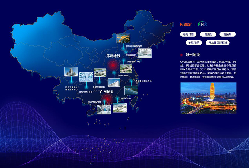 目前,GVS以K-BUS智能照明控制系統(tǒng)先后賦能廣州、鄭州、濟南、梅州、貴陽、佛山等各大城市的軌道交通項目,亦憑廣州地鐵21號線提名2020 KNX協(xié)會「公共工程獎」。